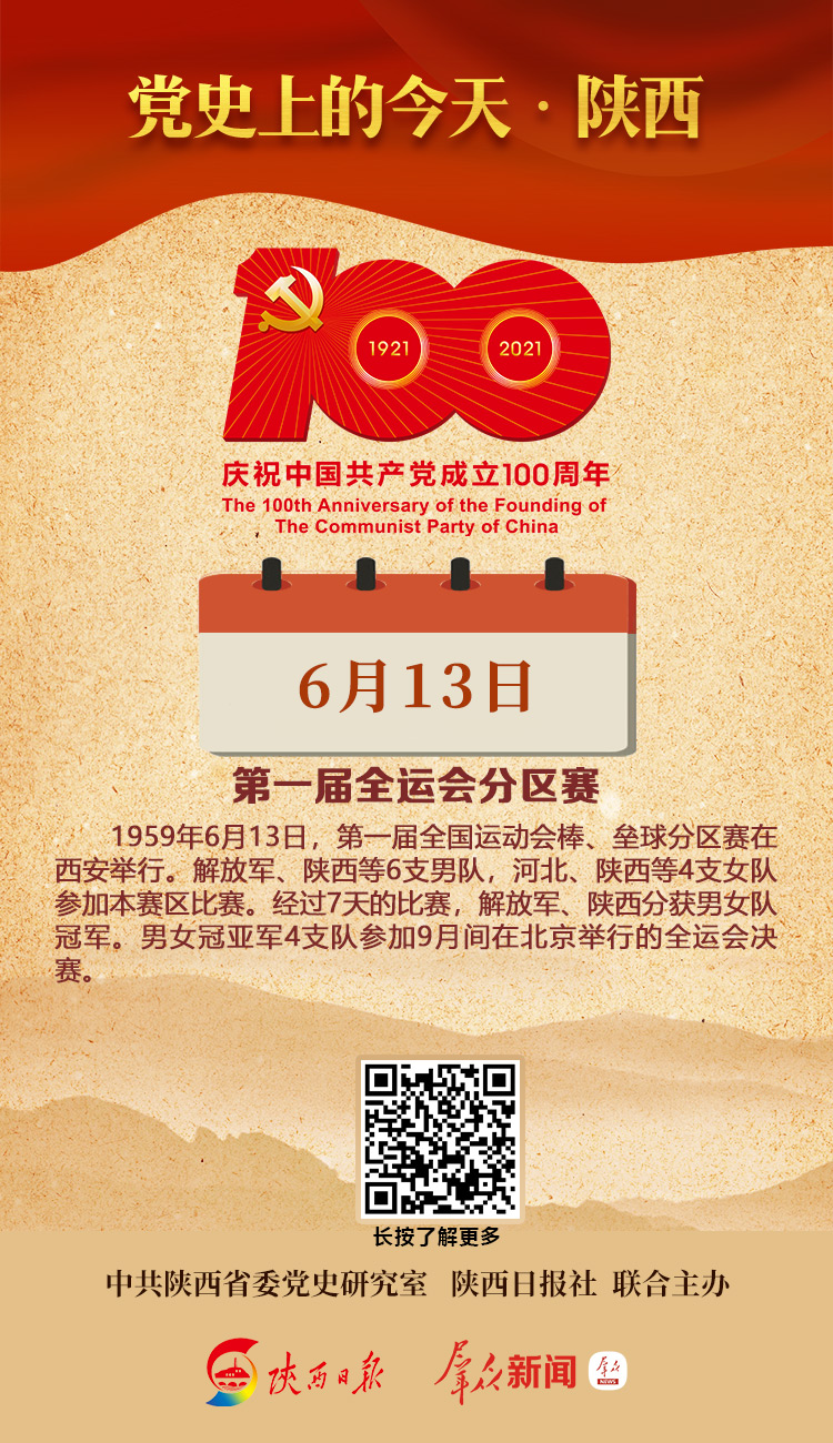 1959年6月13日,第一届全国运动会棒、垒球分区赛在西安举行。解放军、陕西等6支男队,河北、陕西等4支女队参加本赛区比赛。经过7天的比赛,解放军、陕西分获男女队冠军。男女冠亚军4支队参加9月间在北京举行的全运会决赛。