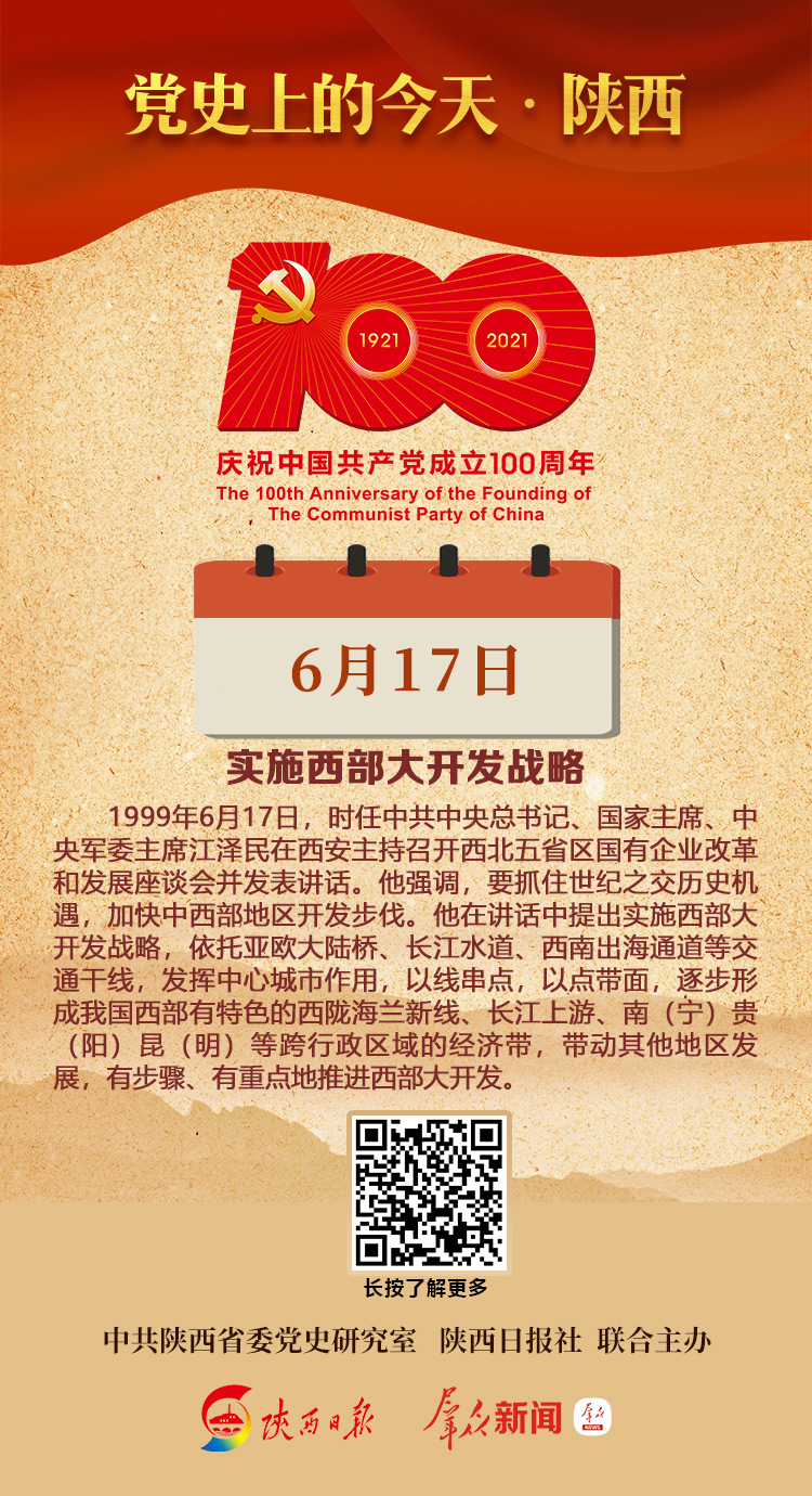 1999年6月17日,时任中共中央总书记、国家主席、中央军委主席江泽民在西安主持召开西北五省区国有企业改革和发展座谈会并发表讲话。他强调,要抓住世纪之交历史机遇,加快中西部地区开发步伐。他在讲话中提出实施西部大开发战略,依托亚欧大陆桥、长江水道、西南出海通道等交通干线,发挥中心城市作用,以线串点,以点带面,逐步形成我国西部有特色的西陇海兰新线、长江上游、南(宁)贵(阳)昆(明)等跨行政区域的经济带,带动其他地区发展,有步骤、有重点地推进西部大开发。