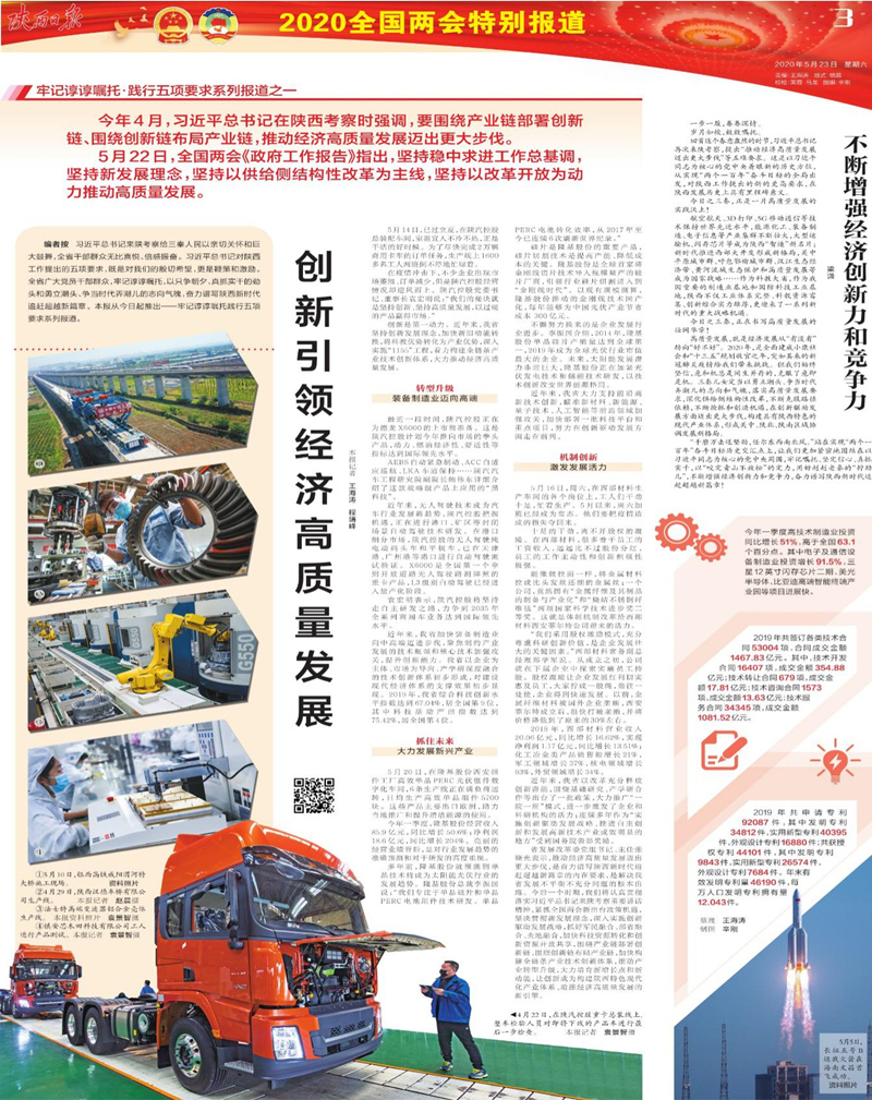 三是贯通落实“五个扎实”“五项要求”,大力宣传陕西凝心聚力追赶超越、推动高质量发展的生动实践。围绕中央和省委重要会议、重大活动,精准解读中央和全省落实举措,突出“陕西元素”,讲好中国故事,多角度、全方位、高质量完成全国两会等重点宣传报道。