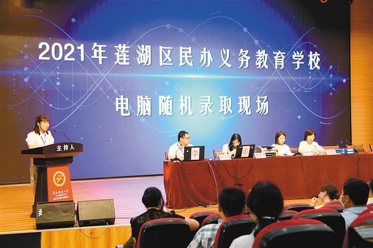 莲湖区民办义务教育学校电脑随机录取现场。 (记者 郝钟毓 摄)