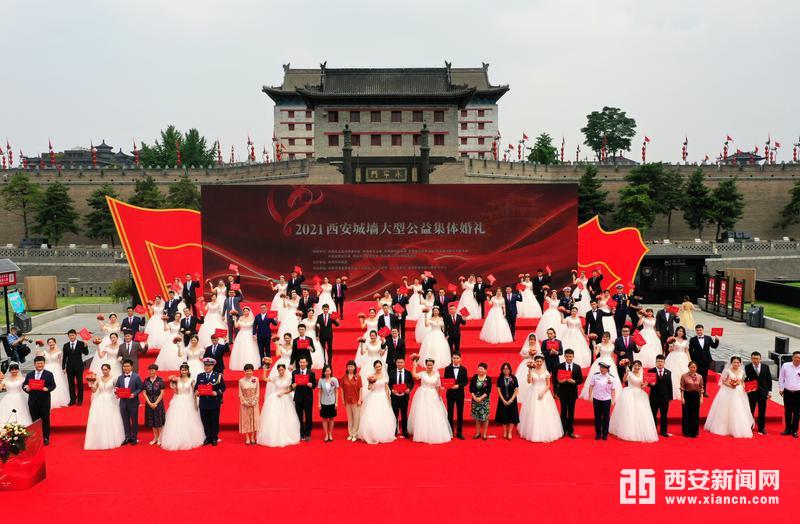 西安新闻网讯 当小家融入大家,他和她用爱情诠释信仰的力量;当爱与责任相逢,他和她奋力书写忠诚与担当。6月27日,“2021西安城墙大型公益集体婚礼”在西安永宁门文化庆典广场举行。