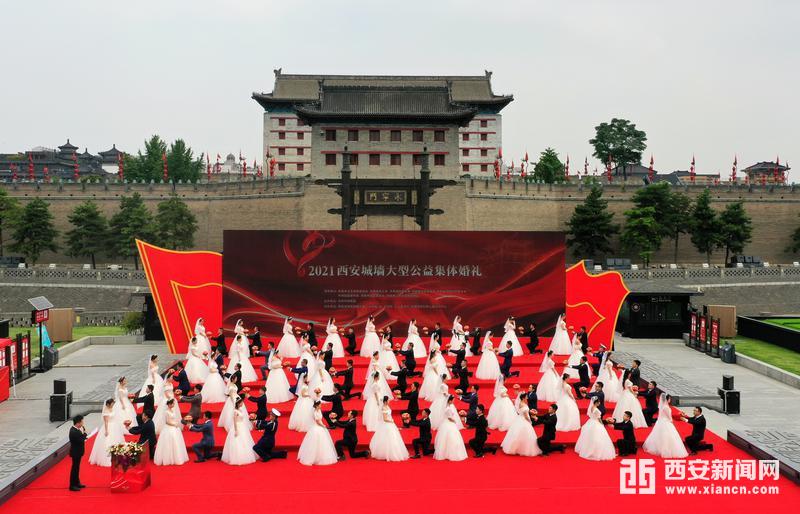 “2021西安城墙大型公益集体婚礼”现场。 (西安报业全媒体记者 李明 摄)