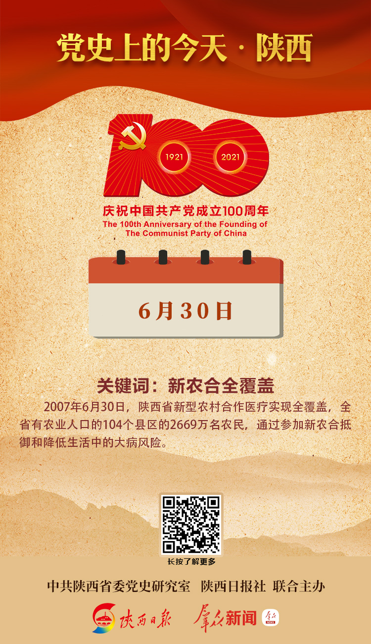 2007年6月30日,陕西省新型农村合作医疗实现全覆盖,全省有农业人口的104个县区的2669万农民,通过参加“新农合”抵御和降低生活中的大病风险。
