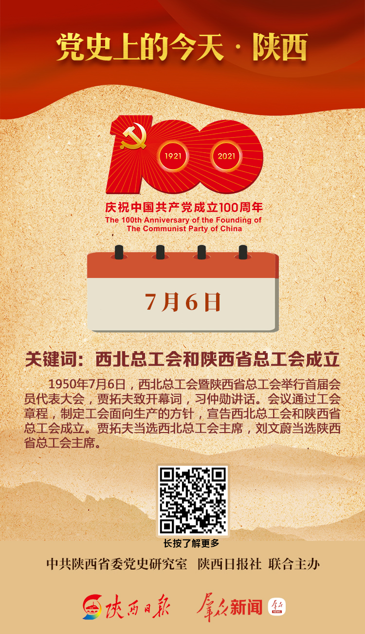 1950年7月6日,西北总工会暨陕西省总工会举行首届会员代表大会,贾拓夫致开幕词,习仲勋讲话。会期7天,通过工会章程,制定工会面向生产的方针,宣告西北总工会和陕西省总工会成立。贾拓夫当选西北总工会主席,刘文蔚当选陕西省总工会主席。