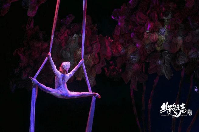演出以百老汇歌舞风格经典呈现,不仅展示了震撼人心的现代考古现场,再现了繁荣有序的汉代长安市集、高大华贵的宫殿和温馨的家庭生活场景,还以“丝绸”为载体,串联起了故事发展的脉络和主角成长的心路历程。《丝路之声》融合了音乐、舞蹈、木偶、杂技、武术等多种艺术形式,每种艺术形式又包含了诸多元素。整场演出既充满了现代时尚感,又保留了中国传统艺术的精华传承。在身临其境的多媒体特效和极具质感的舞台道具加持下,音乐剧《丝路之声》为在场观众营造出了恢弘的汉代文化氛围,呈现出了美轮美奂的舞台视听效果。