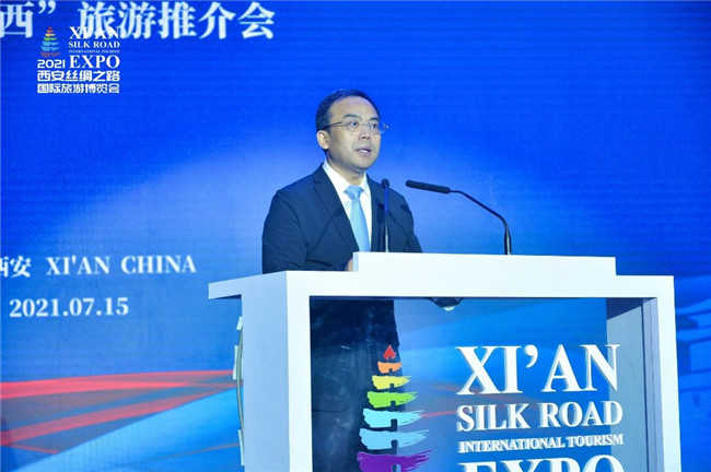7月15日,2021西安丝绸之路国际旅游博览会“文化陕西”旅游推介会在西安成功举办。乌拉圭驻华大使费尔南多·卢格里斯,埃塞俄比亚驻华大使馆公使盖布鲁·阿莱穆,印度尼西亚驻华大使馆公使狄诺,伊朗驻华大使馆公使阿里·内马提,陕西省政协副主席刘宽忍,文化和旅游部国际交流与合作局副局长张西龙,陕西省政府副秘书长刘天雄,陕西省文化和旅游厅党组书记、厅长高阳等领导和嘉宾出席推介会。