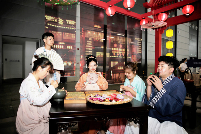 网剧《长安十二时辰》的全网热播一度成为顶流IP,掀起一股长安热。目前,陕文投携“长安十二时辰”项目再次进入大家的视野,致力于打造“长安十二时辰”综合文化品牌。该项目位于西安曲江曼蒂广场,百戏馆、踏歌台、乐游园等唐风建筑,杏仁酪、上元油锤、五香饮等长安饮食,投壶、双陆、傩戏等唐风娱乐活动,全方位、多角度展现着唐长安城市井生活的魅力。
