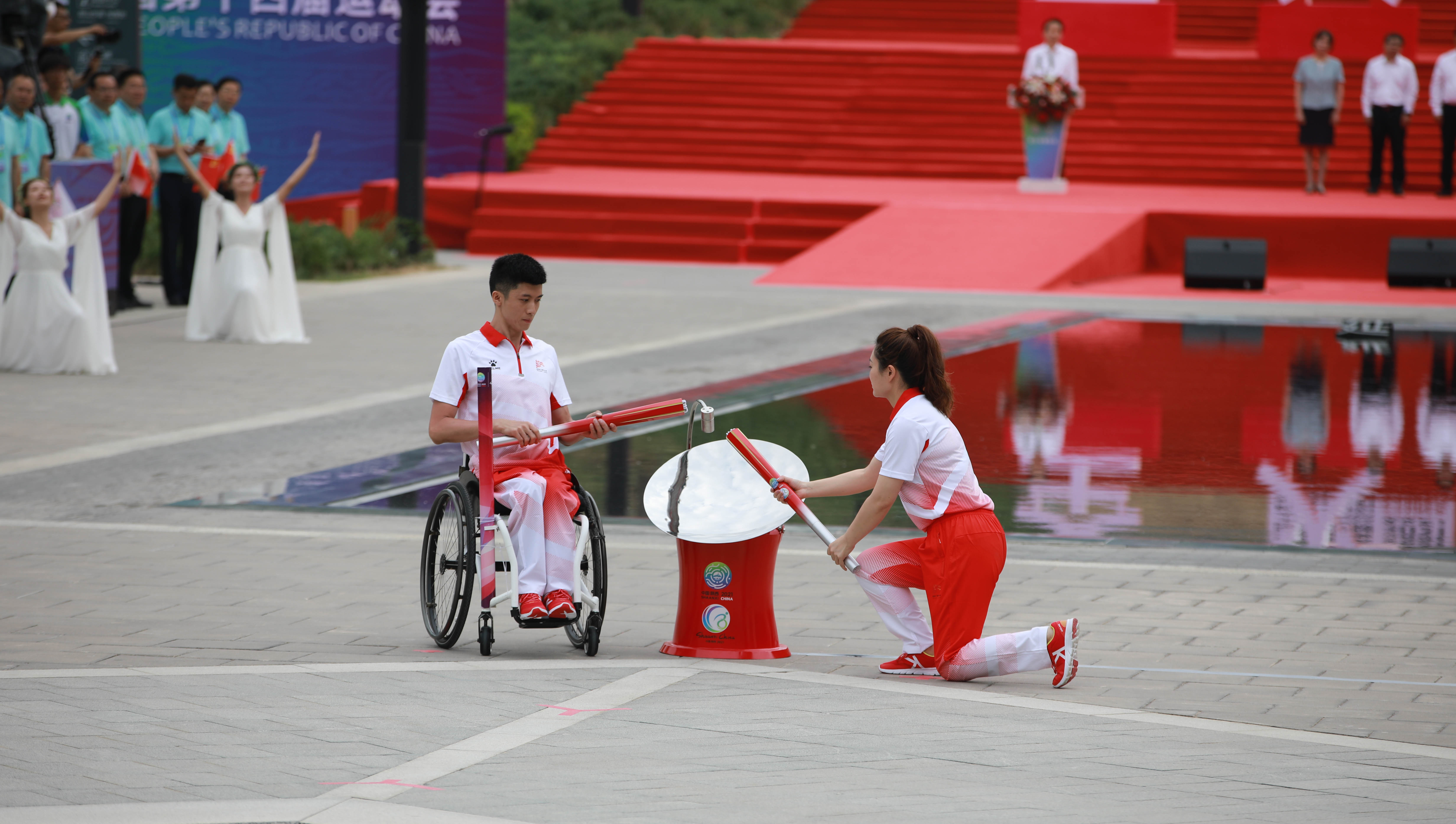 “全民全运,同心同行”。7月17日,中华人民共和国第十四届运动会、中华人民共和国第十一届残疾人运动会暨第八届特殊奥林匹克运动会圣火采集仪式在延安市宝塔山星火广场举行。