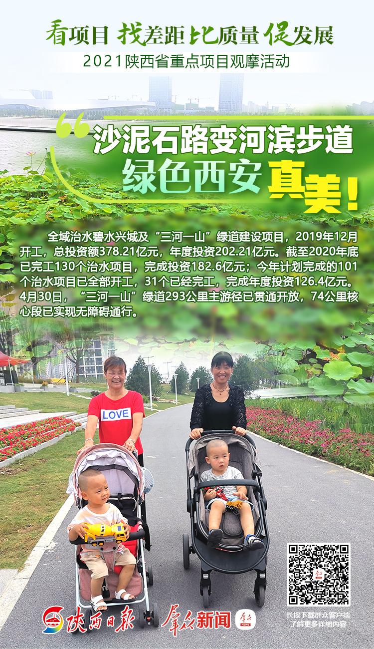 为实现治水成果全民共享,利用浐灞河、渭河、沣河已建成的河道堤防抢险道路和秦岭保护形成的S107环山旅游路,规划实施“三河一山”环线绿道建设。通过三年治理,持续推进生态恢复“八水绕长安”工程建设,加速建设“生态西安”。截至2020年底已完工130个治水项目,完成投资182.6亿元;今年计划完成的101个治水项目已全部开工,31个已经完工,完成年度投资126.4亿元,占年度计划的62.51%。