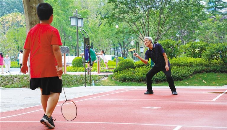 记者看到,在兴庆宫公园北部,大量崭新的运动健身设施坐落于此,新建的羽毛球、乒乓球场地已被前来锻炼的市民占满。这里多年来已形成了浓郁的运动健身氛围,并派生出了许多业余体育项目团体,而且竞技水平不低。热爱羽毛球运动的李智财就常年与球友在此约球。
