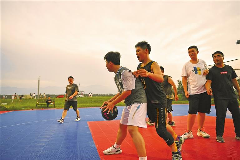 7月18日,杨凌行知中学、邰城实验学校学生在杨凌渭河湿地生态公园内打篮球。 记者 杜玮摄