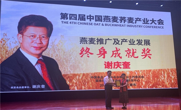值得关注的是,为了表彰近年来为燕麦荞麦行业做出卓越贡献的行业人士,大会主办方中国食品工业协会杂粮产业工作委员会和国家燕麦荞麦产业技术研发中心授予西麦食品谢庆奎董事长燕麦推广及产业发展终身成就奖,为成都大学赵钢教授颁发了荞麦产业发展终身成就奖。