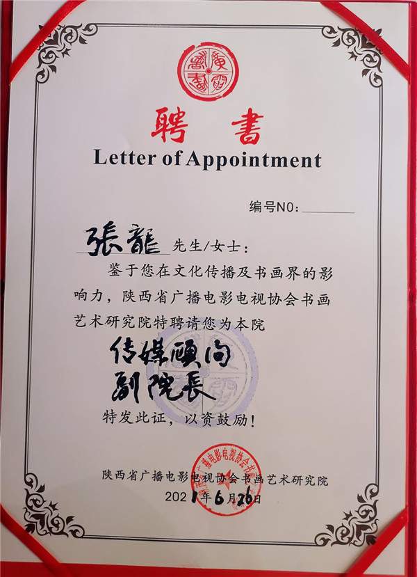 资深传媒人张龙荣膺陕西省广播电影电视协会书画艺术研究院传媒顾问、副院长