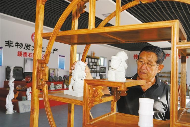 多年来,一批批当地人前来向鲍武文拜师学艺,马应武就是其中一位。他的主要工作是在石头上雕刻花纹。凿子凿刻在石头上,有节奏地发出铮铮的声音。通过一遍遍的凿刻,马应武的生活也发生了变化。2019年,马应武脱了贫。此外,武文石业有限公司还安置了马喜平、鲍霞云、鲍富安、马庄等石雕艺人,他们的人均年收入达到3万元至7万元。“我也是在贫穷家庭出生,自己穷过,就想帮助更多人脱贫。”鲍武文说。