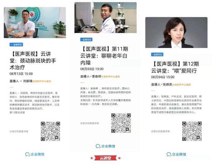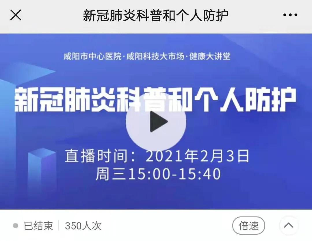 咸阳市中心医院慢病管理中心主任杨琼介绍,新冠肺炎疫情发生以来,大规模人群聚集的健康讲座不再适宜,保持社交距离成为新的健康倡导。鉴于此,医院从群众需求出发,积极利用新媒体优势开办“健康云讲堂”,让群众能够方便快捷地得到专业、全面的健康科普知识。杨琼说,通过这样的方式把医疗服务的触角延伸到千家万户也是咸阳市中心医院践行“学党史 我为群众办实事”以来“走实”又“走心”的具体表现。