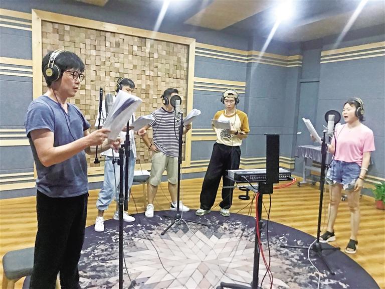 陕西征途文化传媒有限公司出品的6集广播剧《安吴堡的钟声》录制现场。 记者 李向红摄