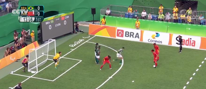 五人制盲人足球,是残奥会上颇具看点的项目之一。运动员在比赛中会戴上眼罩,比赛用球也会内置铃铛。运动员能够通过声音来判断球的位置。除此之外,对方球门后,还会设置一名引导员,为球员提供指导。引导员可以用事先商定好的口号,也可以在罚点球时,用工具敲击门柱来传递信息。