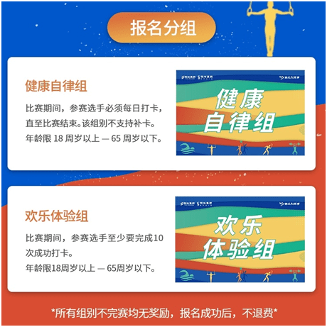 本次比赛分为健康自律组、欢乐体验组