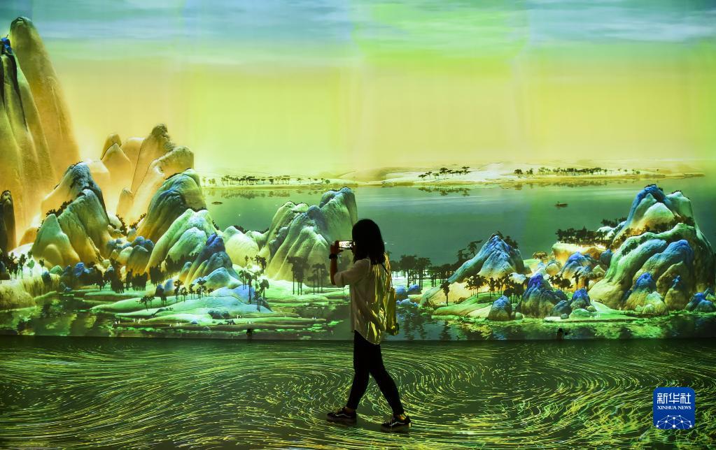 8月25日,参观者在“画游千里江山——故宫沉浸艺术展”上观赏体验。新华社记者 王全超 摄