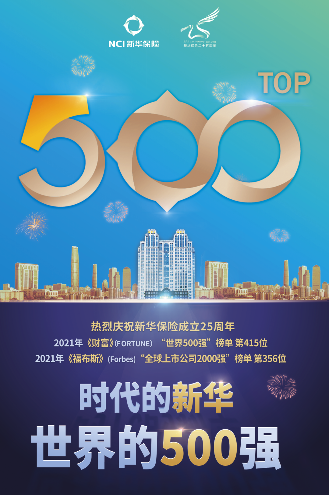 2021年,新华保险以295亿美元的营业收入第三次入围《财富》世界500强榜单,排名第415位,创公司在《财富》世界500强排名新高。这是公司继5月位列《福布斯》“全球上市公司2000强”榜单第356位后又获认同,再度成为“双世界500强”。