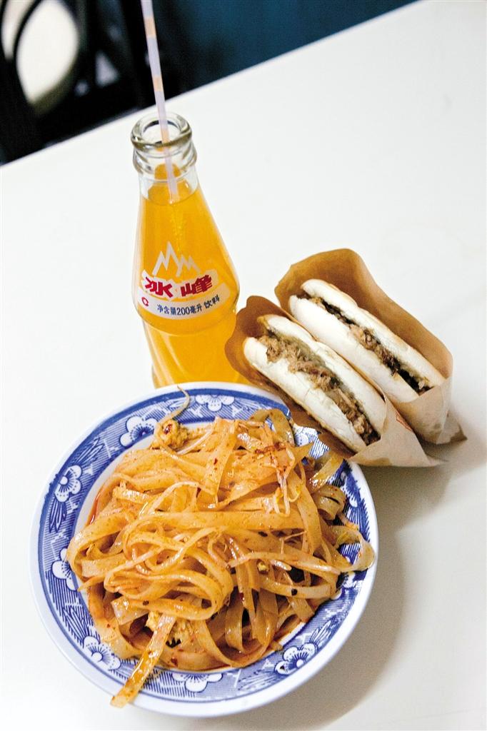 三秦套餐:凉皮、肉夹馍、冰峰汽水。 (资料图片 记者 翟小雪 摄)