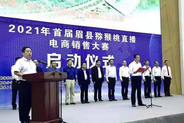 9月17日,首届眉县猕猴桃直播电商销售大赛启动仪式在国家级(眉县)猕猴桃产业园区举行,县领导李西平、陈尚东、黄军怀、祁亚军、谷建敏、张新林参加启动仪式。县委常委、副县长陈尚东宣布大赛启动,猕猴桃园区管委会党委书记魏宏策主持启动仪式。