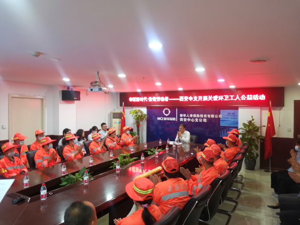 活动中,环卫工人代表郝师傅送上了来自陕西明堂环卫有限公司的锦旗,感谢新华保险西安中支险长期以来对一线环卫工人的关爱,表示会继续干好本职工作,以辖区干净整洁的环境面貌回报党和社会。