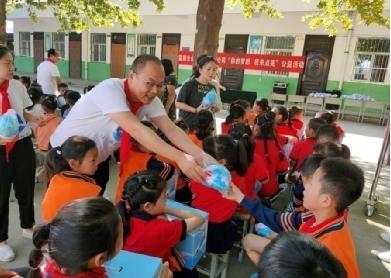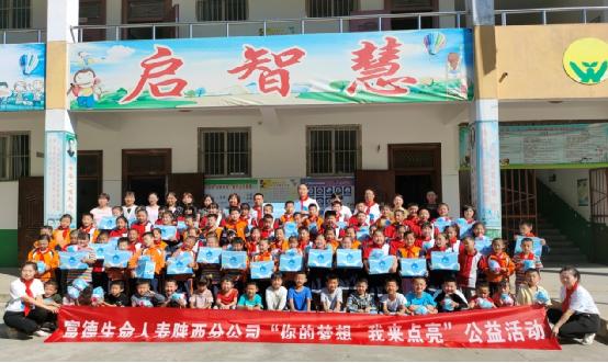 2021年9月14日,富德生命人寿渭南中支“你的梦想,我来点亮”小海豚计划公益活动再次来到华阴市罗敷镇武旗营小学,富德生命人寿渭南中支爱心代表为这里的留守儿童送去了公司精心准备的“小海豚温暖包”。
