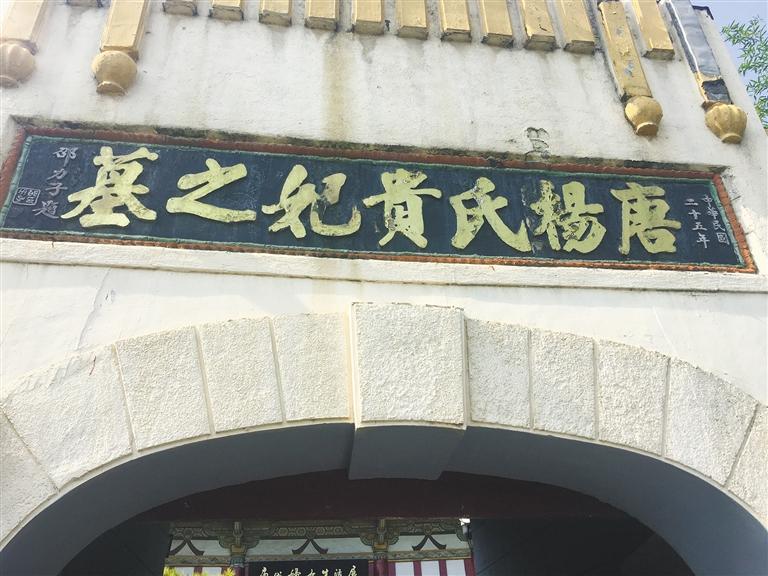 杨贵妃墓园依山而建,呈阶梯状,门额上是邵力子先生题写的“唐杨氏贵妃之墓”7个大字。