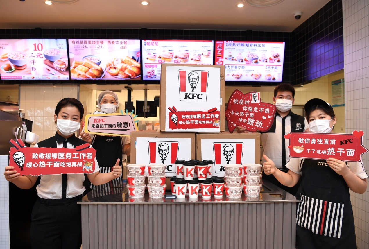 新冠疫情最为严重期间,肯德基在多地为医护工作者送餐,用自己的实际行动支持抗疫。随后肯德基在武汉率先推出热干面新品,为这座城市加油。“未尝热干面,先闻芝麻香”,肯德基热干面在武汉推出的一刻,便受到当地消费者的热烈欢迎。
