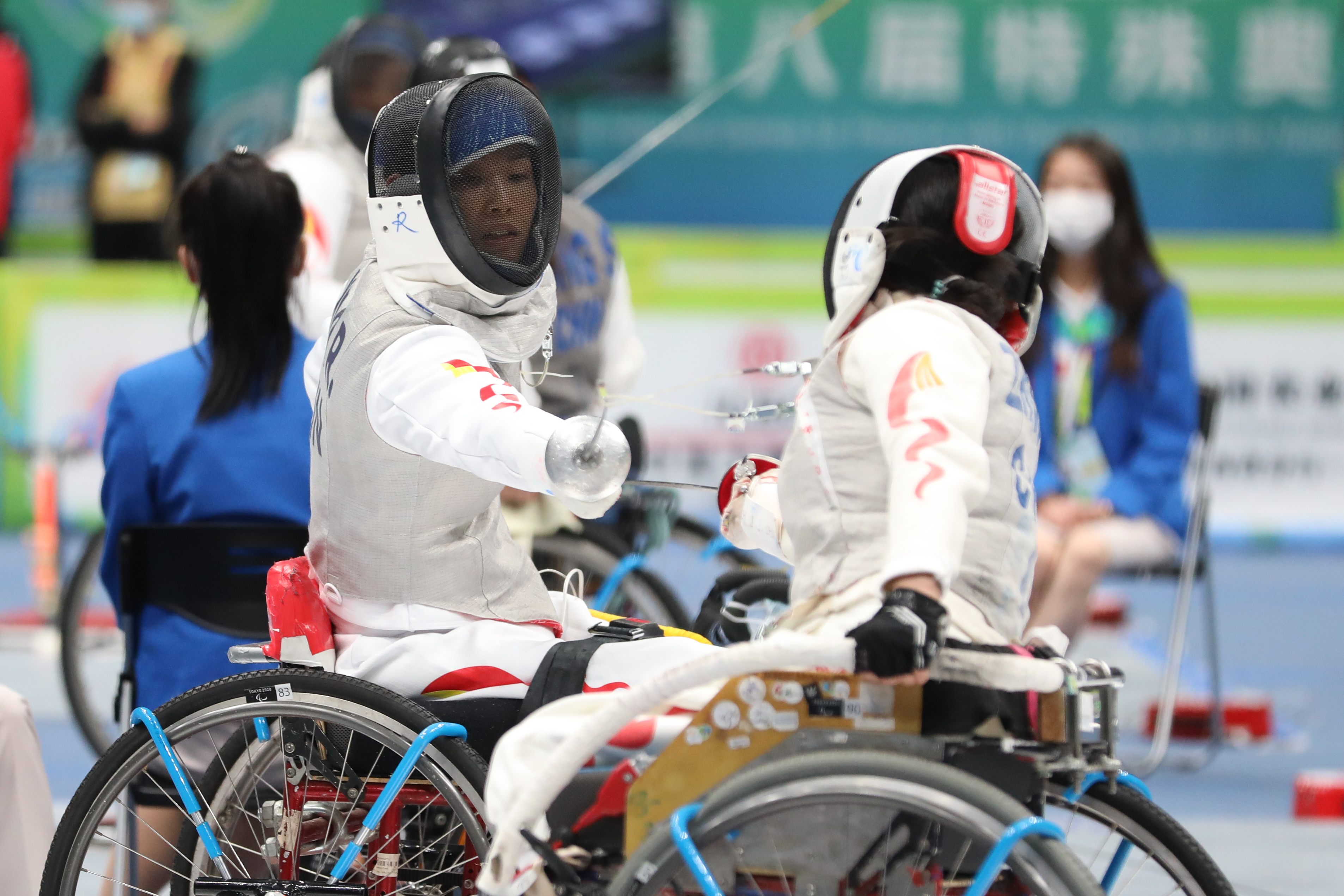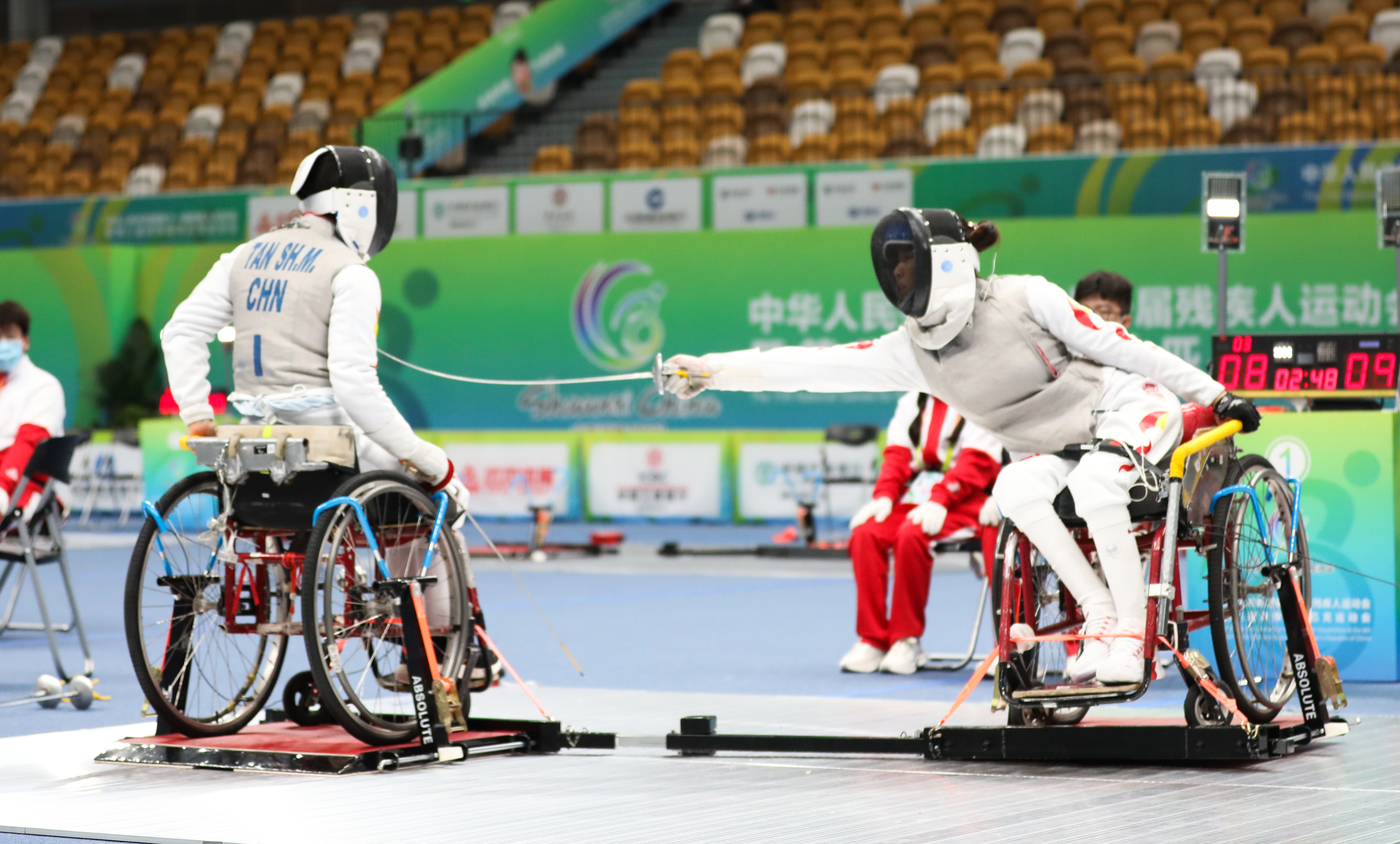 10月10日,全国第十一届残运会轮椅击剑项目在西安开赛。在下午进行的女子花剑B级比赛中,上海队周景景夺得金牌,陕西队肖蓉与江苏队康苏分别获得银牌和铜牌。