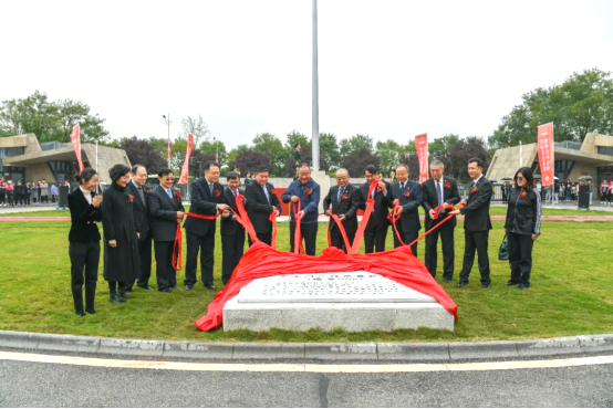 与会领导为西安培华学院爱国主义教育广场和红旗揭幕