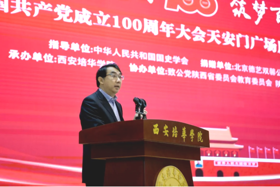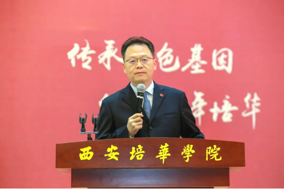 中共陕西省委教育工委、陕西省教育厅二级巡视员罗侃淳在致辞中谈到,西安培华学院作为民办高校的优秀代表,今天的活动让我们感受到培华学子发自内心的爱国热情,展示了培华朝气蓬勃的办学活力。西安培华学院获赠红旗,建设了爱国主义教育阵地,使命光荣、意义重大,为陕西省爱国主义教育开辟了新的阵地、丰富了新的内容,是陕西省民办教育系统开展党史教育的一个闪光点,更是培华广大师生的骄傲。