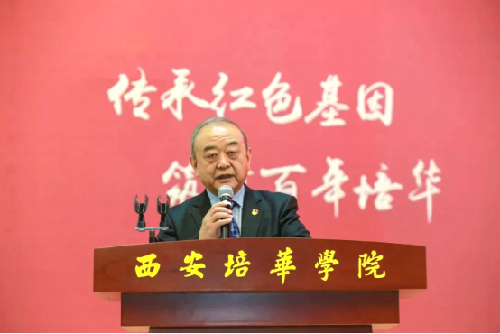 西安培华学院理事长姜波在致辞时表示,西安培华学院自建校之初就具有红色基因,始终将爱国主义精神融入到教育办学的工作当中。希望通过此次活动用红色主题教育活动去影响当代大学生,教育学生认真地学党史、学国史;希望社会主义伟大建设事业薪火相传;希望培华人不忘初心、勇担使命、携手并进,做一名合格的社会主义接班人。