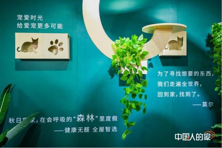 据现场了解,“猫肥家润”快闪主题空间,将绿色健康与萌宠完美融于居家空间,呈现给观众一个绿色健康的萌宠空间。这是尚品宅配多年来对绿色环保理念的坚持与践行,以及不断对消费需求进行深刻洞悉的结果。品牌用具有“无醛添加”和“抗菌防霉”特性的第二代康净板打造萌宠之家,帮助国人和萌宠提供更健康、舒适的居家空间。