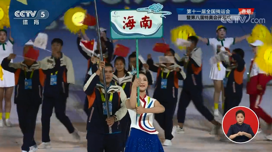 10月22日晚,全国第十一届残运会暨第八届特奥会(以下称“残特奥会”)开幕式在西安奥体中心体育馆隆重举行。海南省代表团入场。
