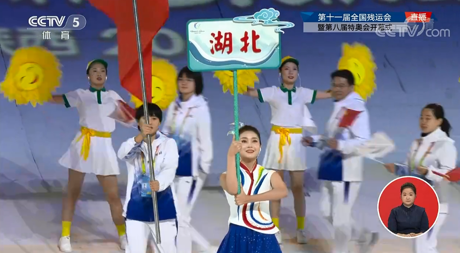 10月22日晚,全国第十一届残运会暨第八届特奥会开幕式在西安奥体中心体育馆隆重举行。湖北省代表团入场。