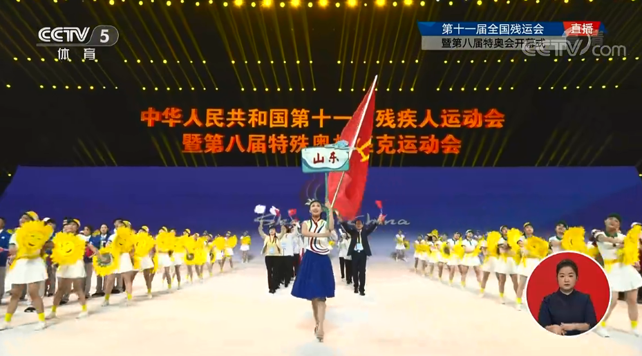10月22日晚,全国第十一届残运会暨第八届特奥会开幕式在西安奥体中心体育馆隆重举行。山东省代表团入场。