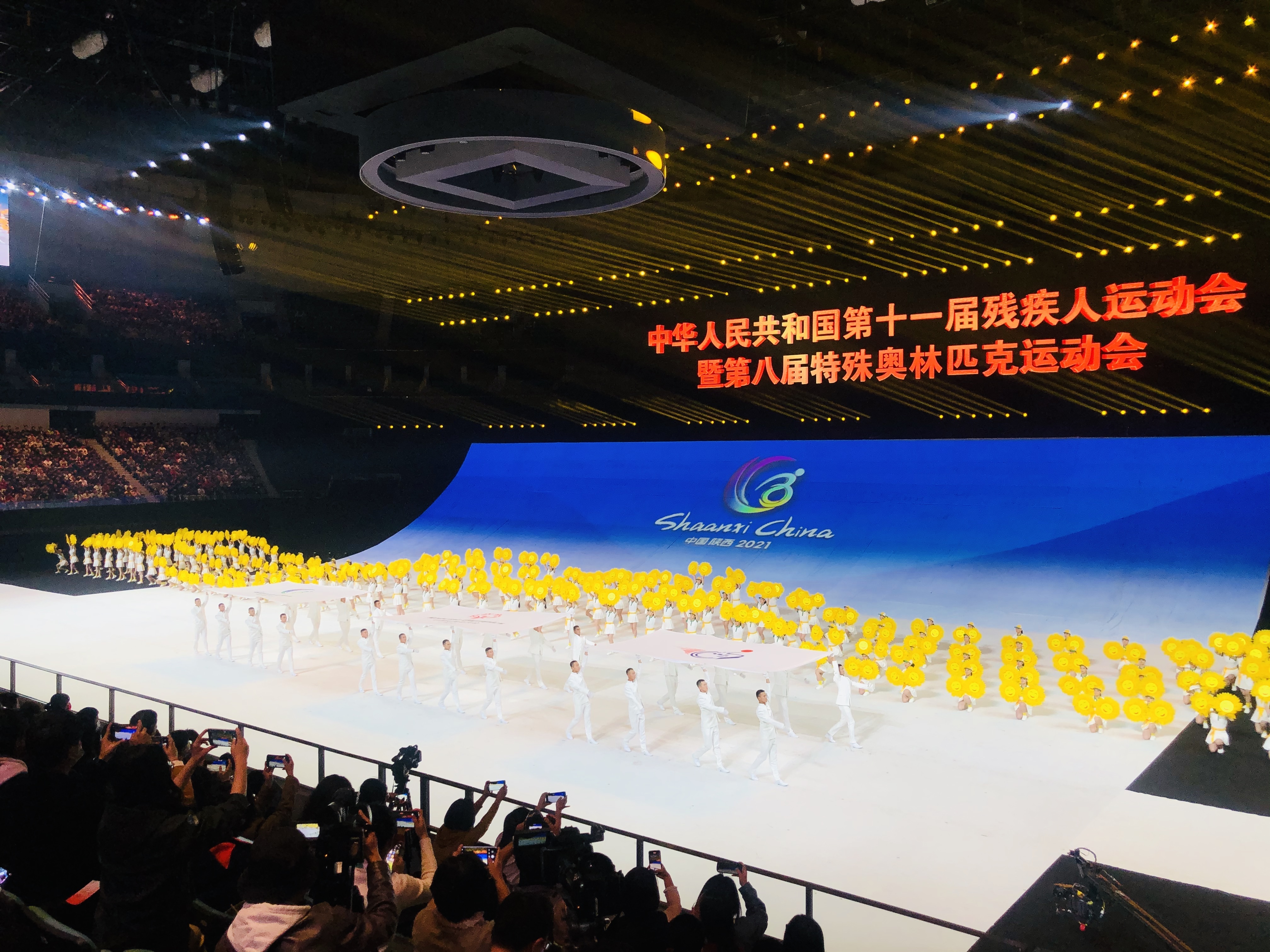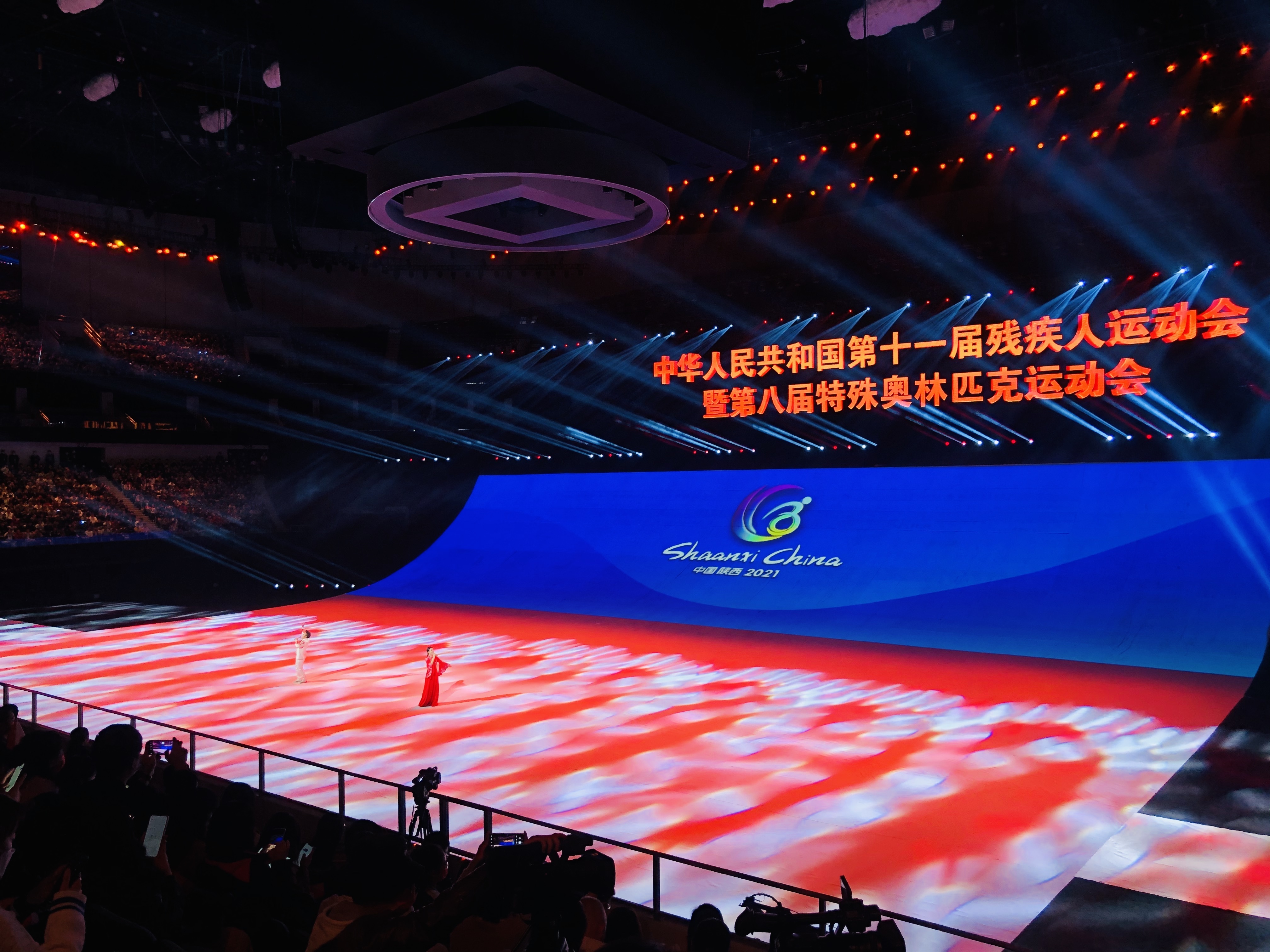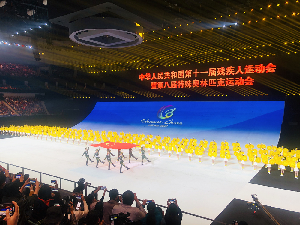 10月22日晚8时,中华人民共和国第十一届残疾人运动会暨第八届特殊奥林匹克运动会开幕式在陕西西安奥体中心体育馆举行。