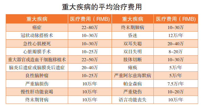 重大疾病的治疗费用需要多少?由中国精算师协会于2020年12月发布的《国民防范重大疾病健康教育读本》整理了20种重大疾病所需的平均治疗费用,可供参考: