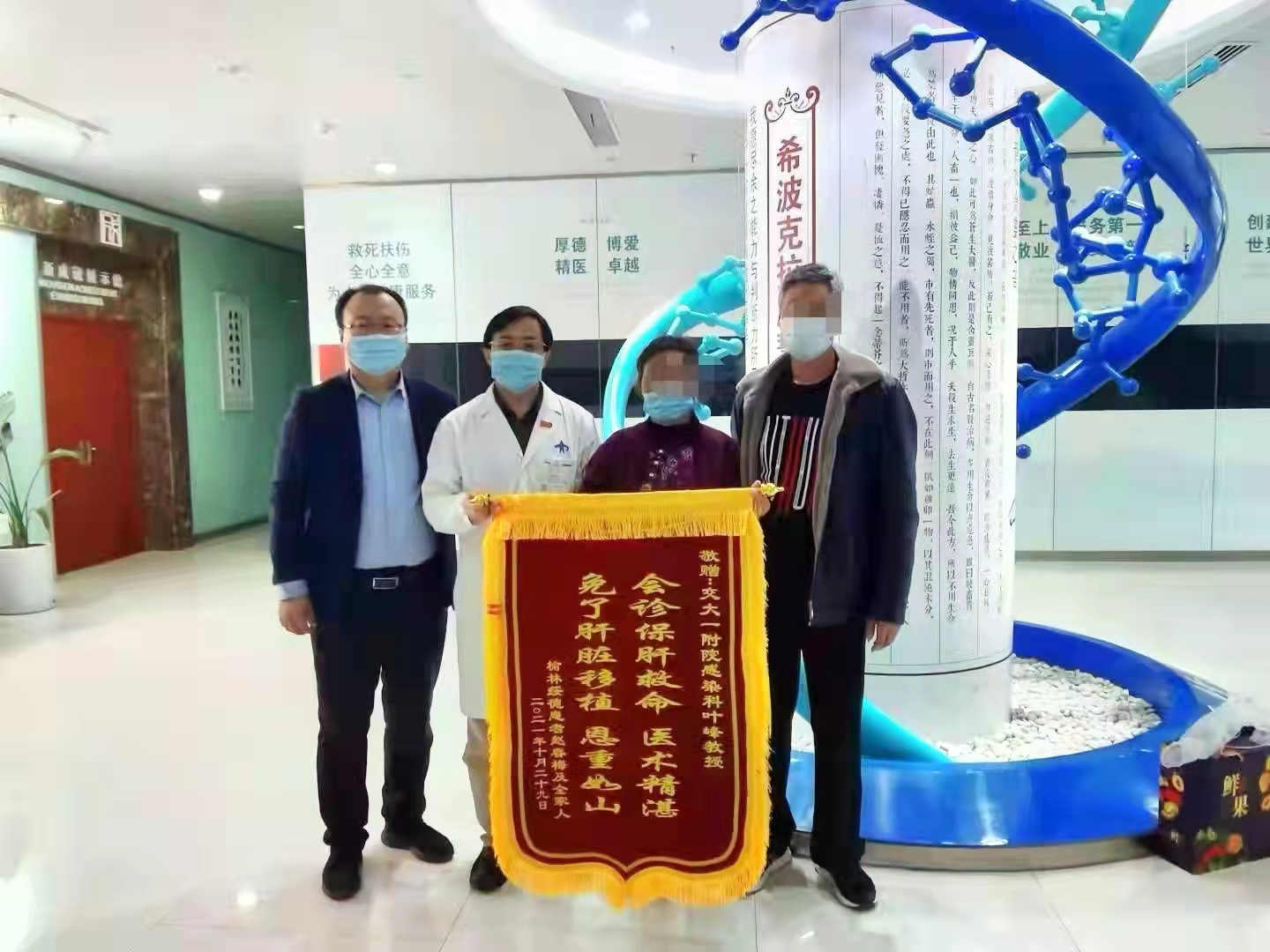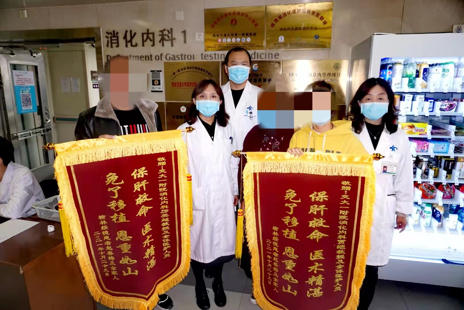 “保肝救命,医术精湛;免了移植,恩重如山,谢谢你们!”这是10月29日,一位患者“重生”后,在西安交大一附院消化内科病房外,向四位救命恩人送锦旗,温馨、感人一幕。