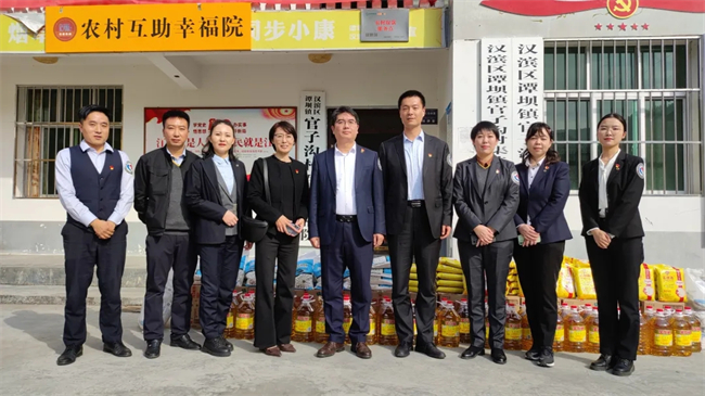 10月28日,新华保险安康中支党支部赴汉滨区谭坝镇官子沟村开展“乡村振兴 你我同行”及“尊老为德、敬老为善、助老为乐、爱老为美”党建活动。活动期间,在官子沟村互助幸福院开展了公益捐赠仪式,参观了官子沟村脱贫攻坚成果、村毛绒玩具厂、核桃园等产业,并同村委会和老人代表们就乡村振兴特别是敬老爱老进行了深入交流。