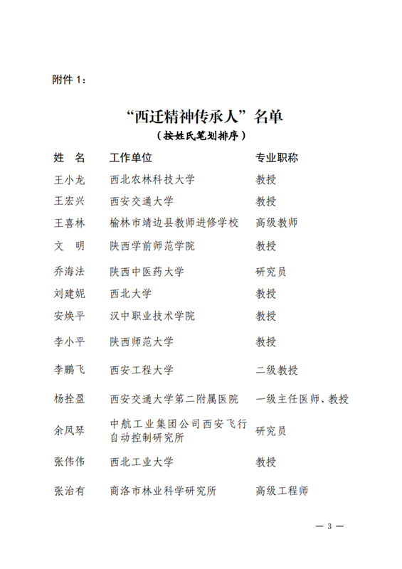 附件1:《“西迁精神传承人”名单》
