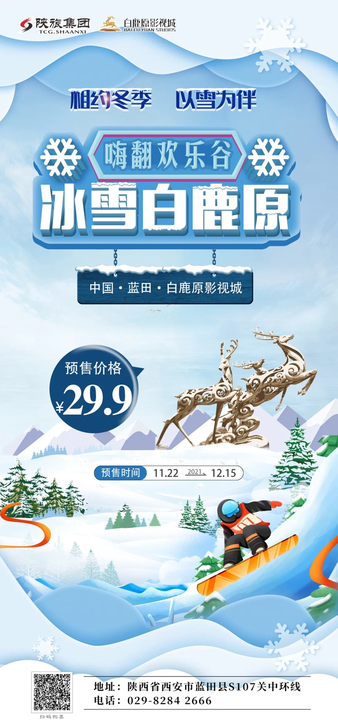 届时,“燃情冰雪·筑梦冬奥”白鹿原影视城冰雪旅游文化节也将浪漫上线,预售抢购29.9元就可以置身无垠的白雪上体验纵横驰骋,快来白鹿原影视城赴一场冰雪狂欢派对吧!