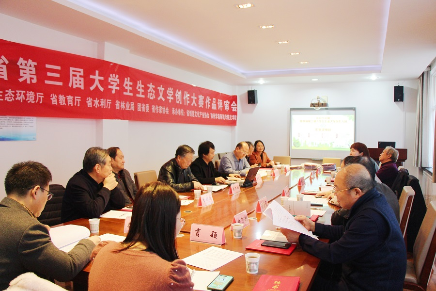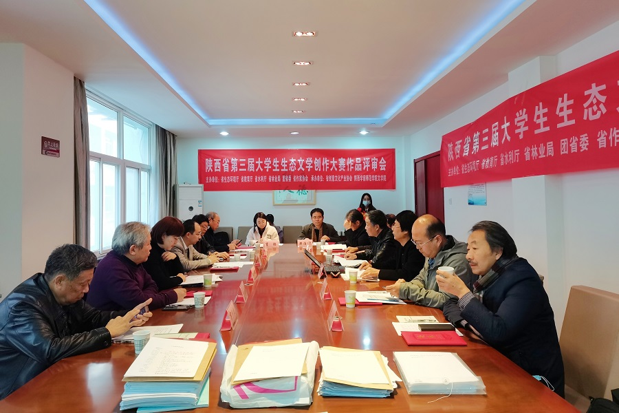 11月30日,由陕西省生态环境厅、省教育厅、省水利厅、省林业局、团省委和省作协主办,由陕西省创意文化产业协会、陕西学前师范学院文学院和西安国秦贸易有限公司承办的“长安古乐杯”陕西省第三届大学生生态文学创作大赛作品评审会在陕西学前师范学院文学院举行。评审会由省委宣传部原巡视员胡万城主持,陕西学前师范学院文学院牛文明院长致欢迎词。经专家系统评审,68件作品脱颖而出,荣获各类奖项。