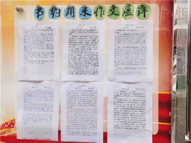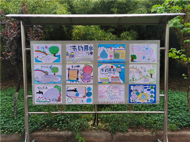 在节水教育上下功夫。该校通过校园广播、宣传栏标语等,宣传普及日常节水知识;向全校师生发布《节水倡议书》,使节约用水“进班级”“进家庭”。同时,依托“全国节约用水宣传周”,开展节水班会、节水征文、节水演讲等丰富多彩的节水主题系列活动。