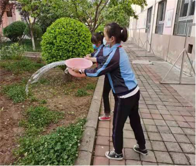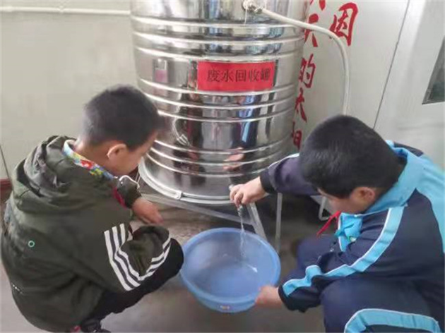 此外,该校立足现有的基础设施,在节水方式上频出“新招”。餐厅净水机和校园洗手池旁边,设置有废水回收罐和回收桶,收集来的废水可用于卫生清洁和绿化浇灌;师生们日常的洗漱用水,也会收集起来泼洒到学校中的“小花园”。