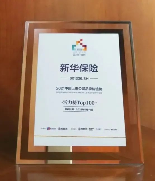 5月,由《每日经济新闻》与清华大学经济管理学院·中国企业研究中心联合编制的《2021中国上市公司品牌价值榜》发布。新华保险荣登活力榜Top100。