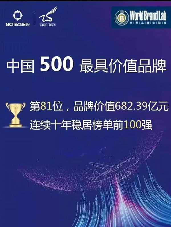 6月,世界品牌实验室(World Brand Lab)发布2021年《中国500最具价值品牌》分析报告。新华保险品牌价值为682.39亿元,排名第81位。这是新华保险自该榜单诞生起,连续十八年入榜,连续十年居榜单前100名。