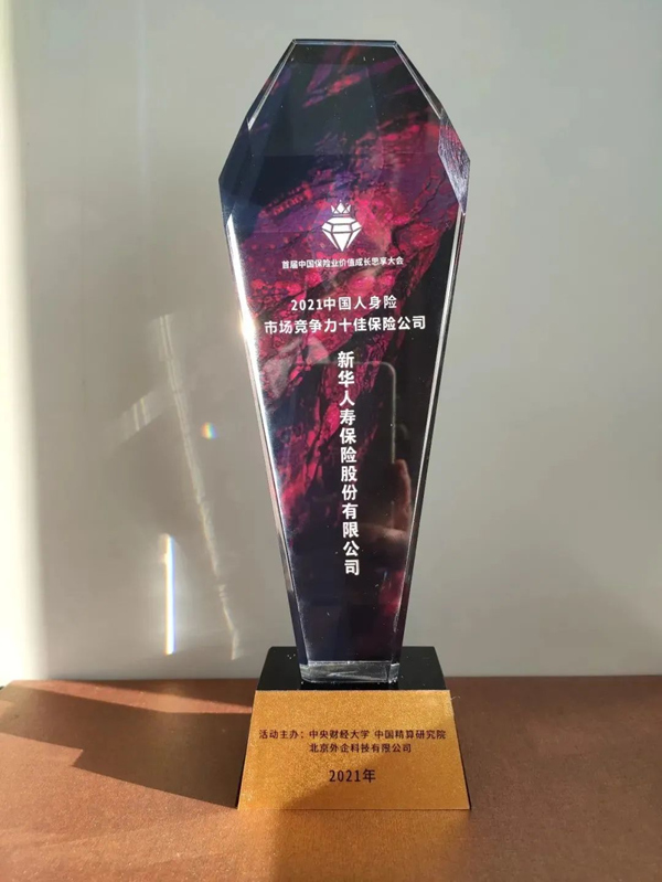 12月,在由中央财经大学中国精算研究院、北京外企科技有限公司、数字产业创新研究中心共同主办,《人民日报》健康客户端健康保险频道媒体支持的2021首届中国保险业价值成长思享会暨保险业数字化峰会上,新华保险荣获“2021中国人身险市场竞争力十佳保险公司”。